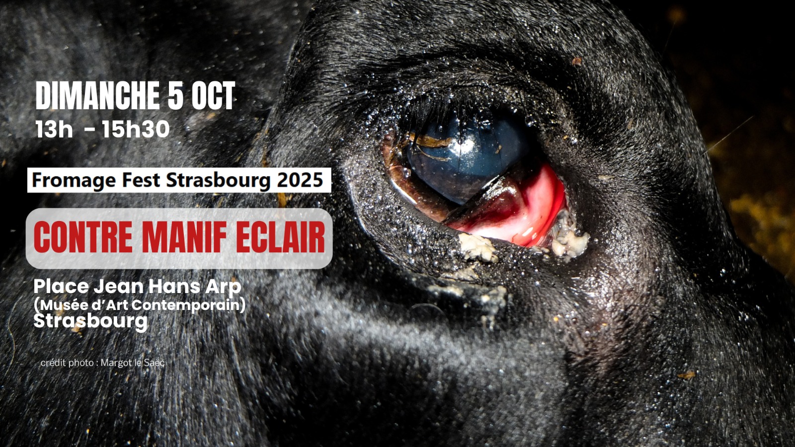![]() A Strasbourg, une « fête du fromage » est organisée à côté du Musée d’Art Moderne. Nous appelons donc les antispécistes à une mobilisation éclaire de dernière minute devant l’entrée du festival. |